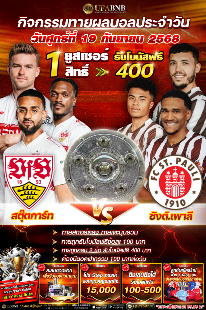 กิจกรรมทายผลฟุตบอล รับโบนัสเครดิตฟรี 400 บาท ระหว่าง สต