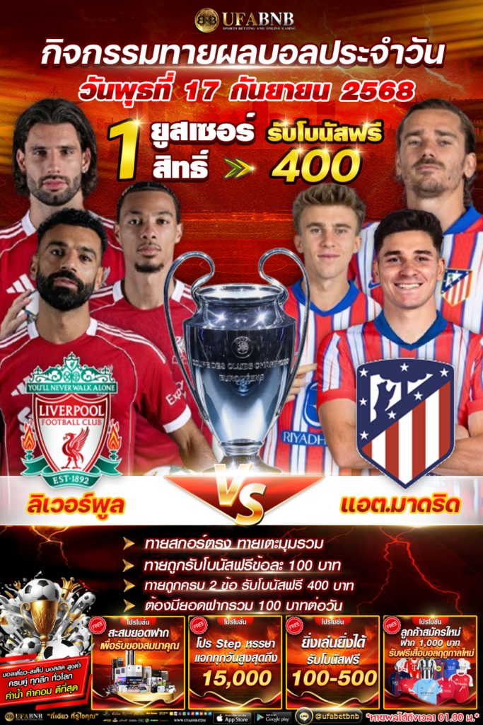 กิจกรรมทายผลฟุตบอล รับโบนัสเครดิตฟรี 400 บาท ระหว่าง ลิ