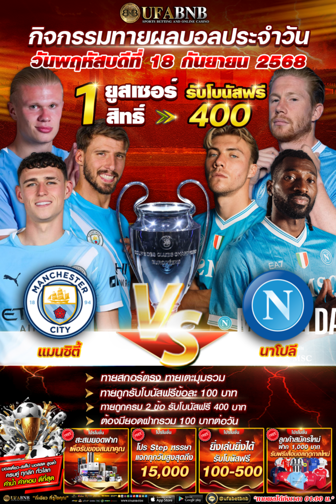 กิจกรรมทายผลฟุตบอล รับโบนัสเครดิตฟรี 400 บาท ระหว่าง แม